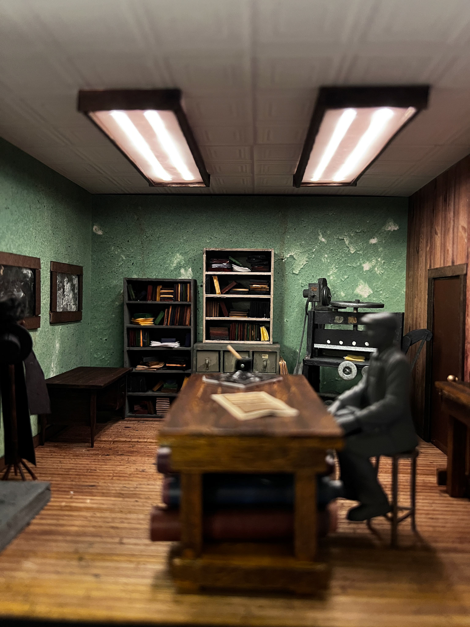 This is an homage to Henry Bookbinding in the Lower East Side. I found his space so charming and full of rich texture that I wanted to capture it in this tiny room.